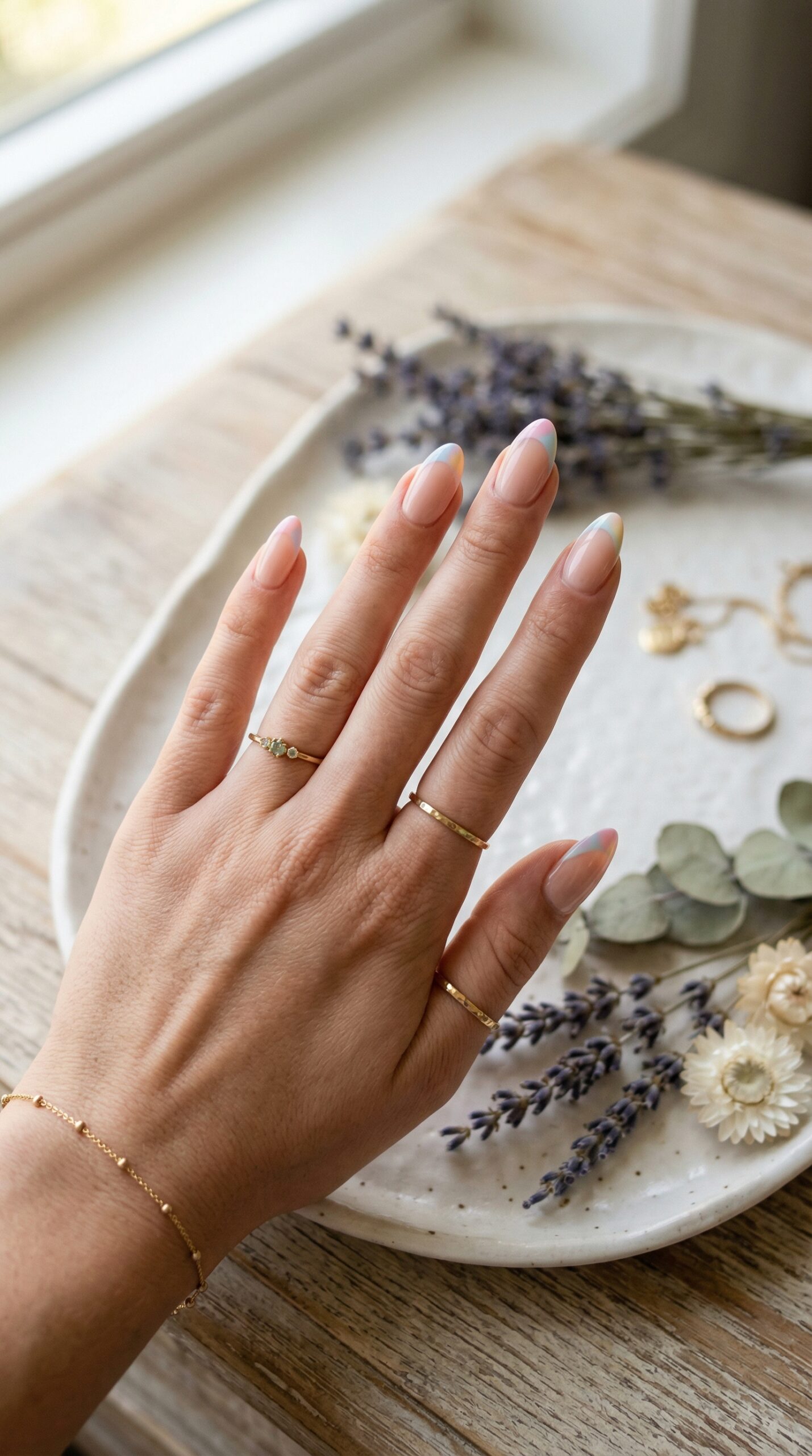 Soft rainbow shades decorate the tips. Each color feels playful yet soft.