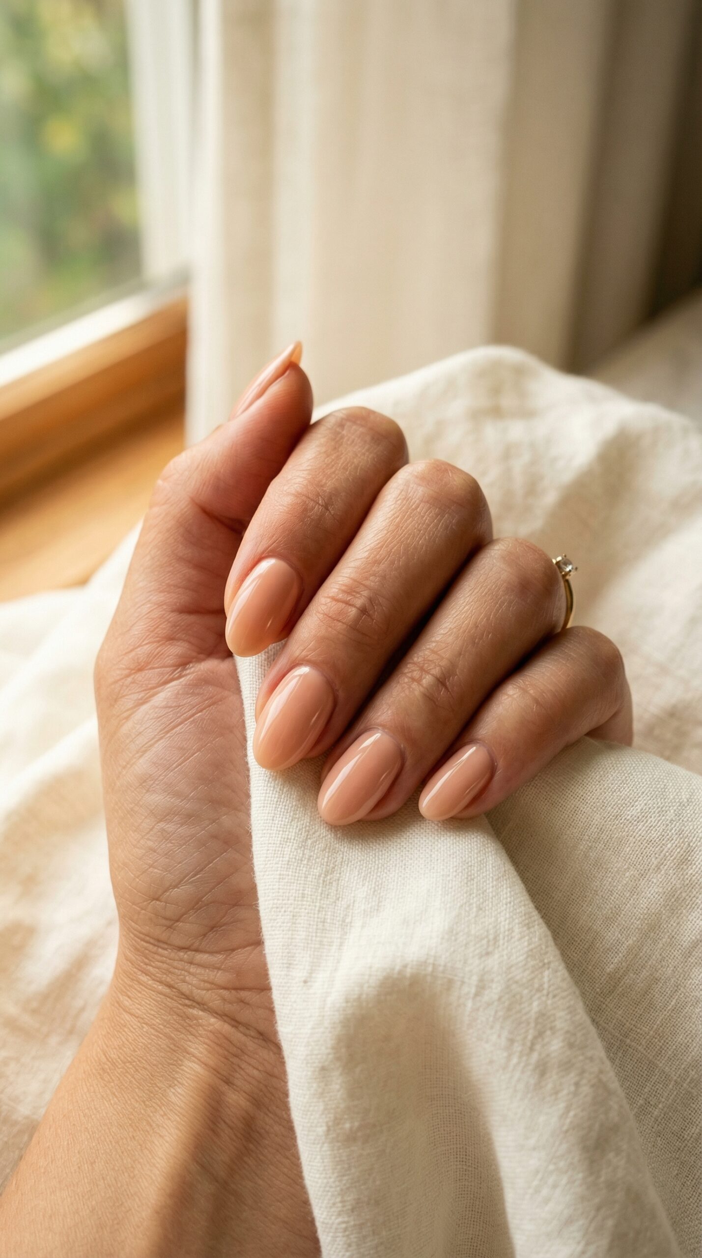 Soft nude meets peach warmth. It flatters beautifully under sunlight.