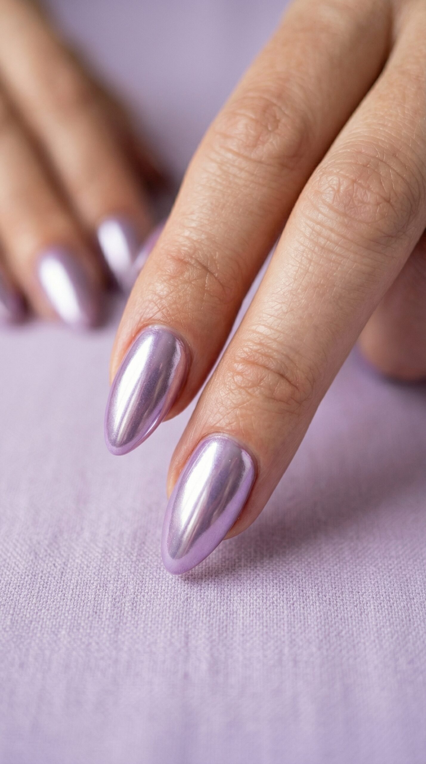 Soft lilac meets chrome shine. A dreamy futuristic finish.
