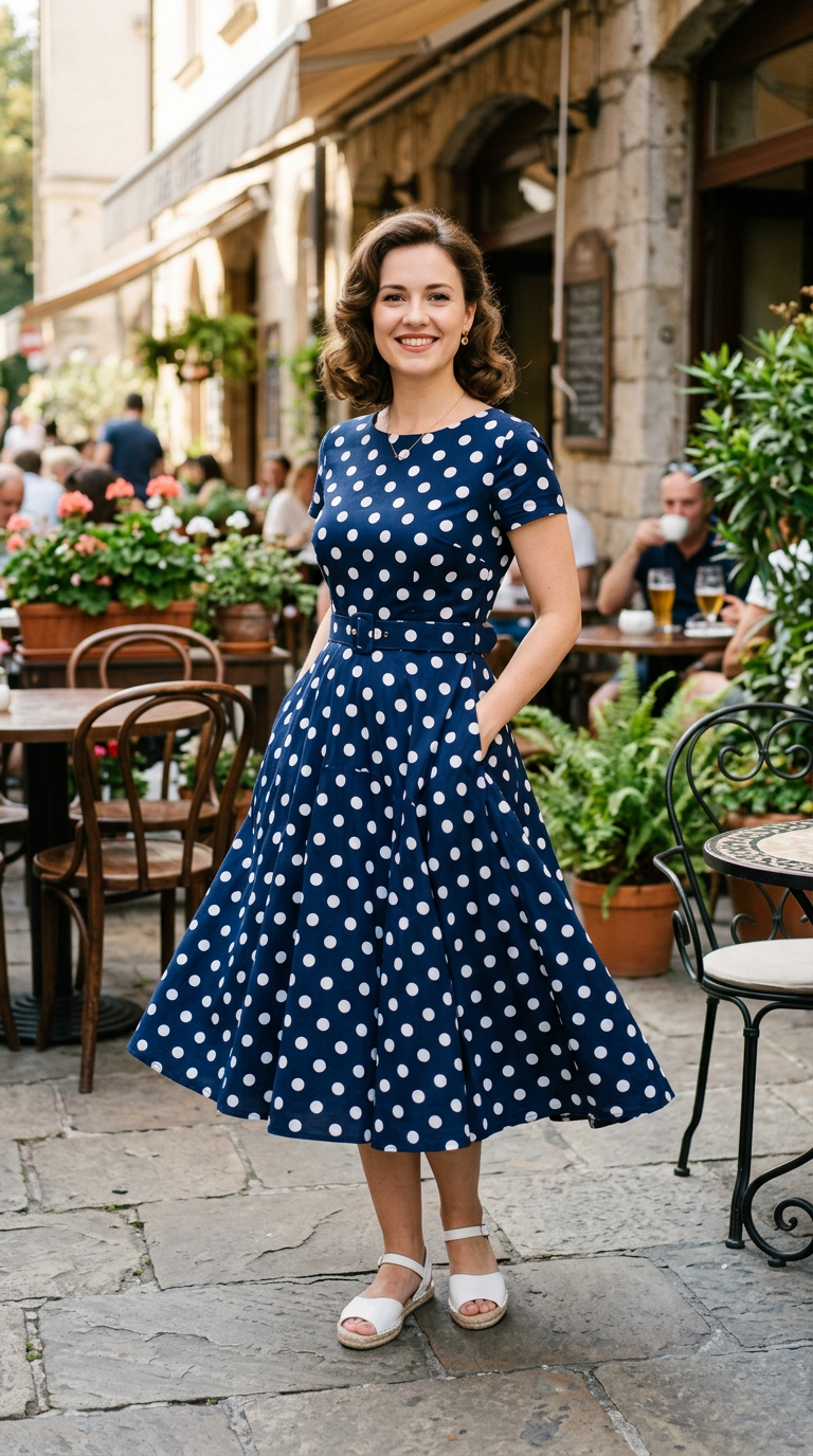 3. 50s Polka Dot Midi Dress