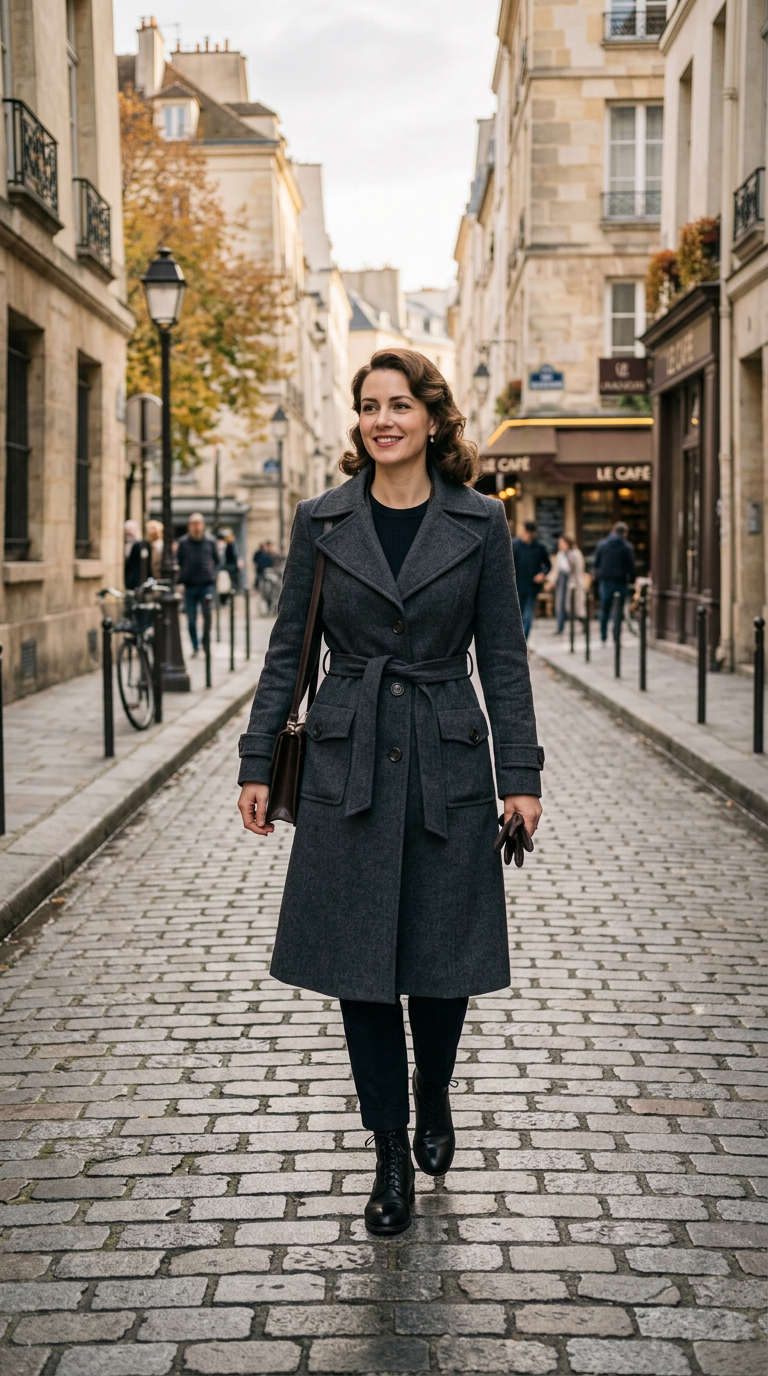 Perfect for colder climates and timeless wardrobes. Suits most body shapes due to its structured silhouette.