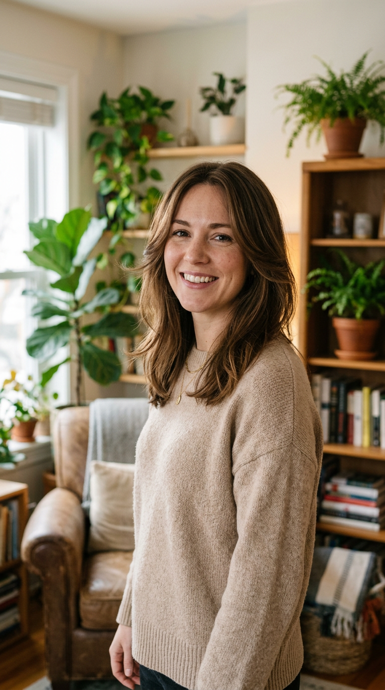 Soft layers frame the face gently. Movement adds softness and dimension.