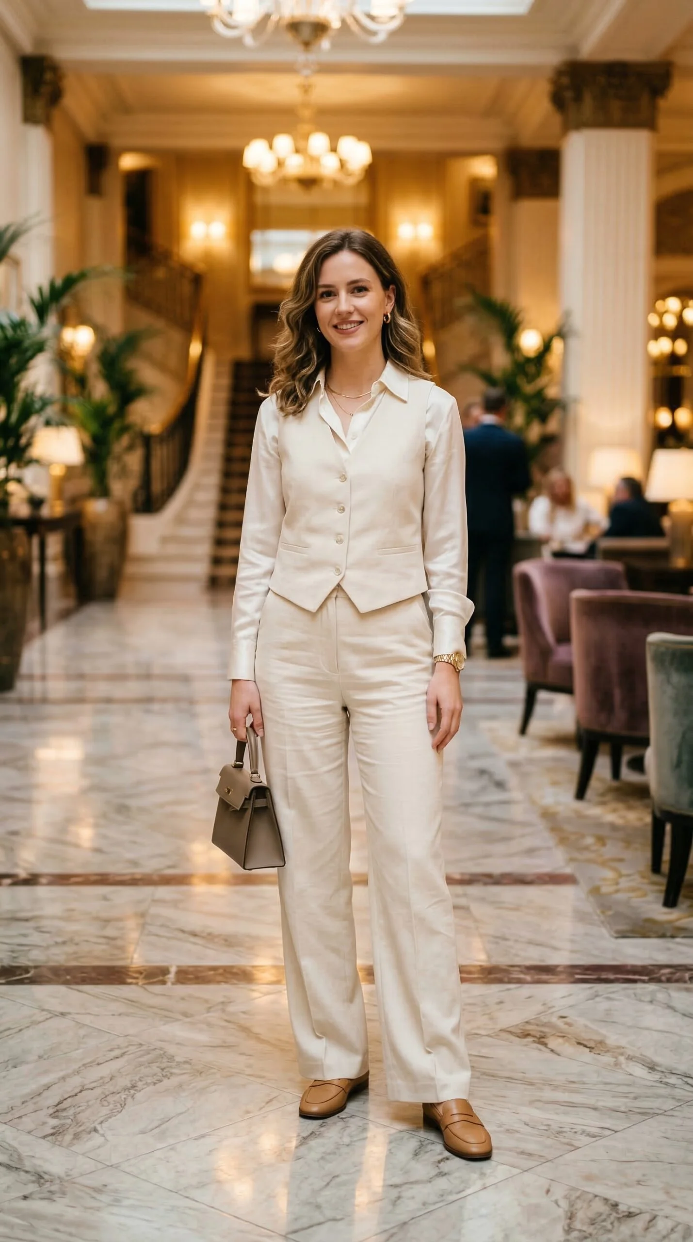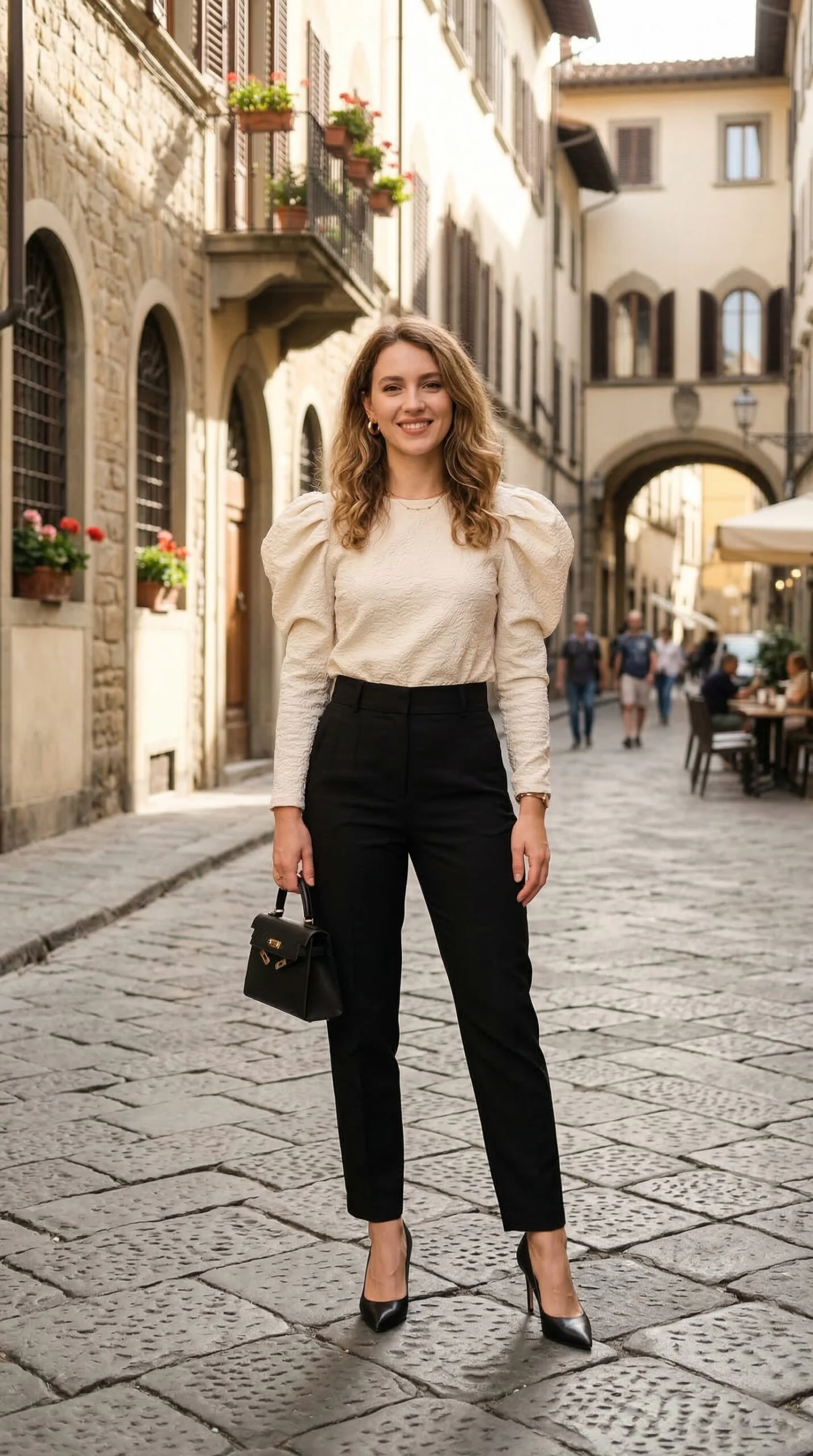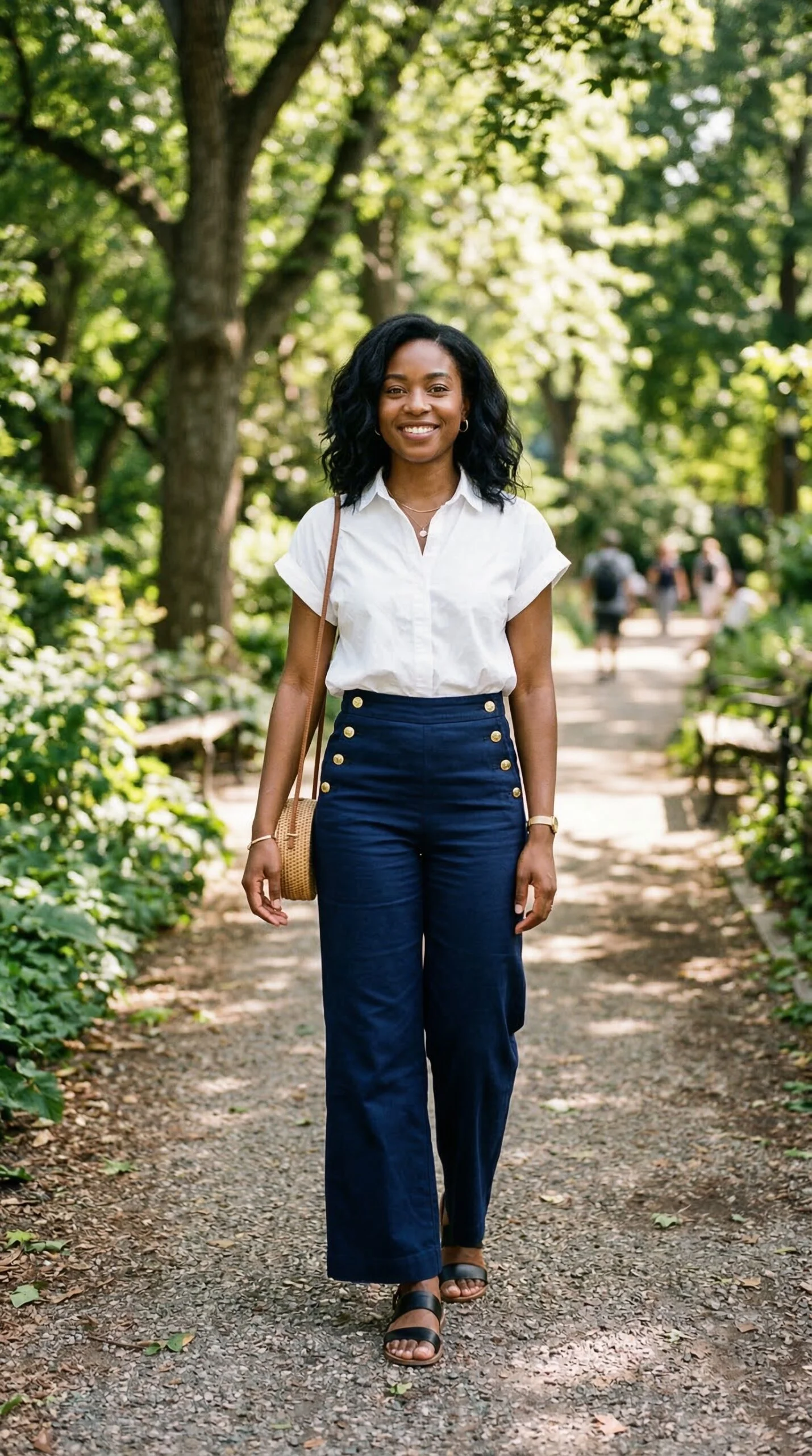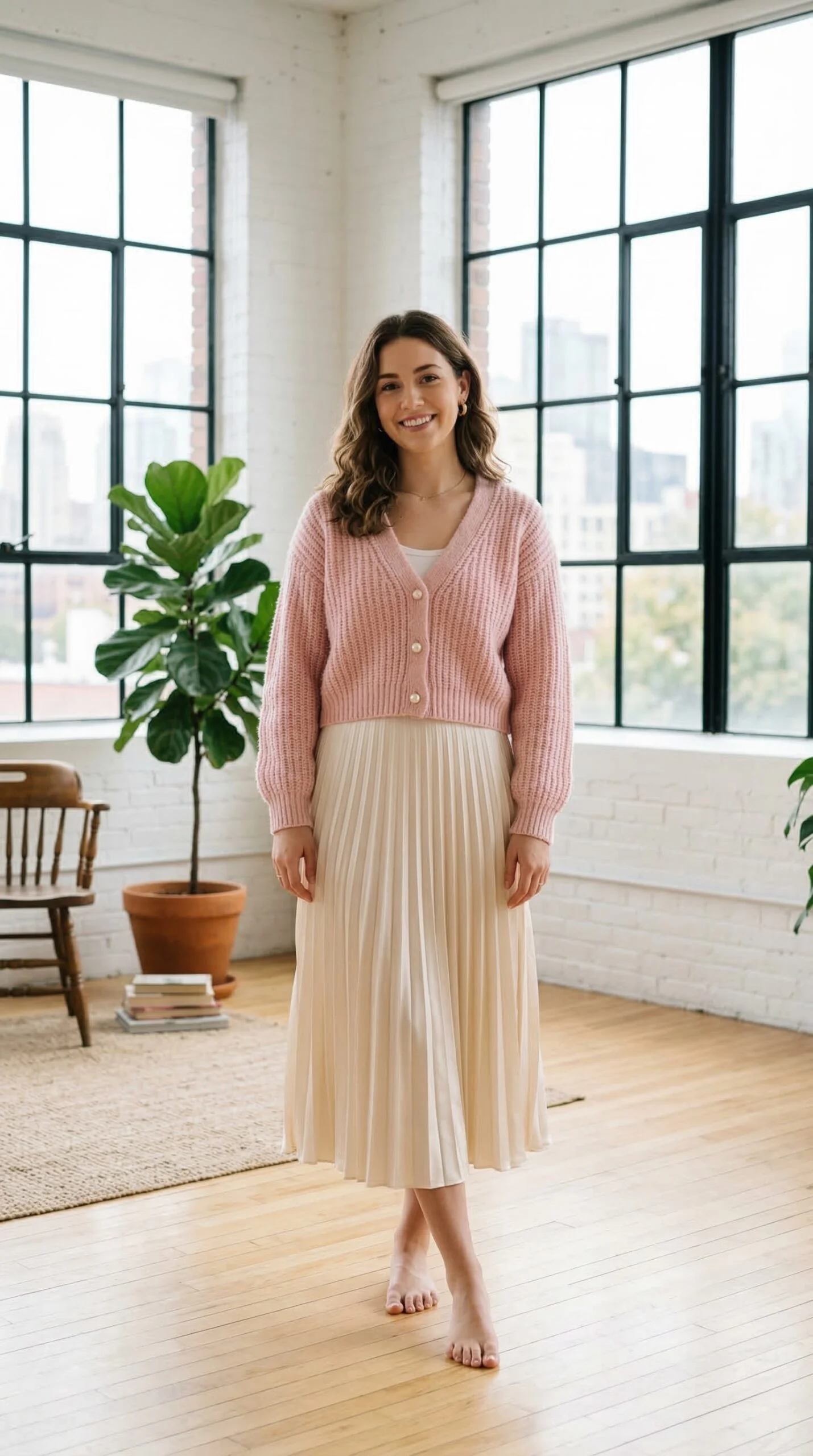 This look suits many skin tones and works beautifully for brunch, workdays, or creative meetings. It flatters both petite and tall silhouettes.
