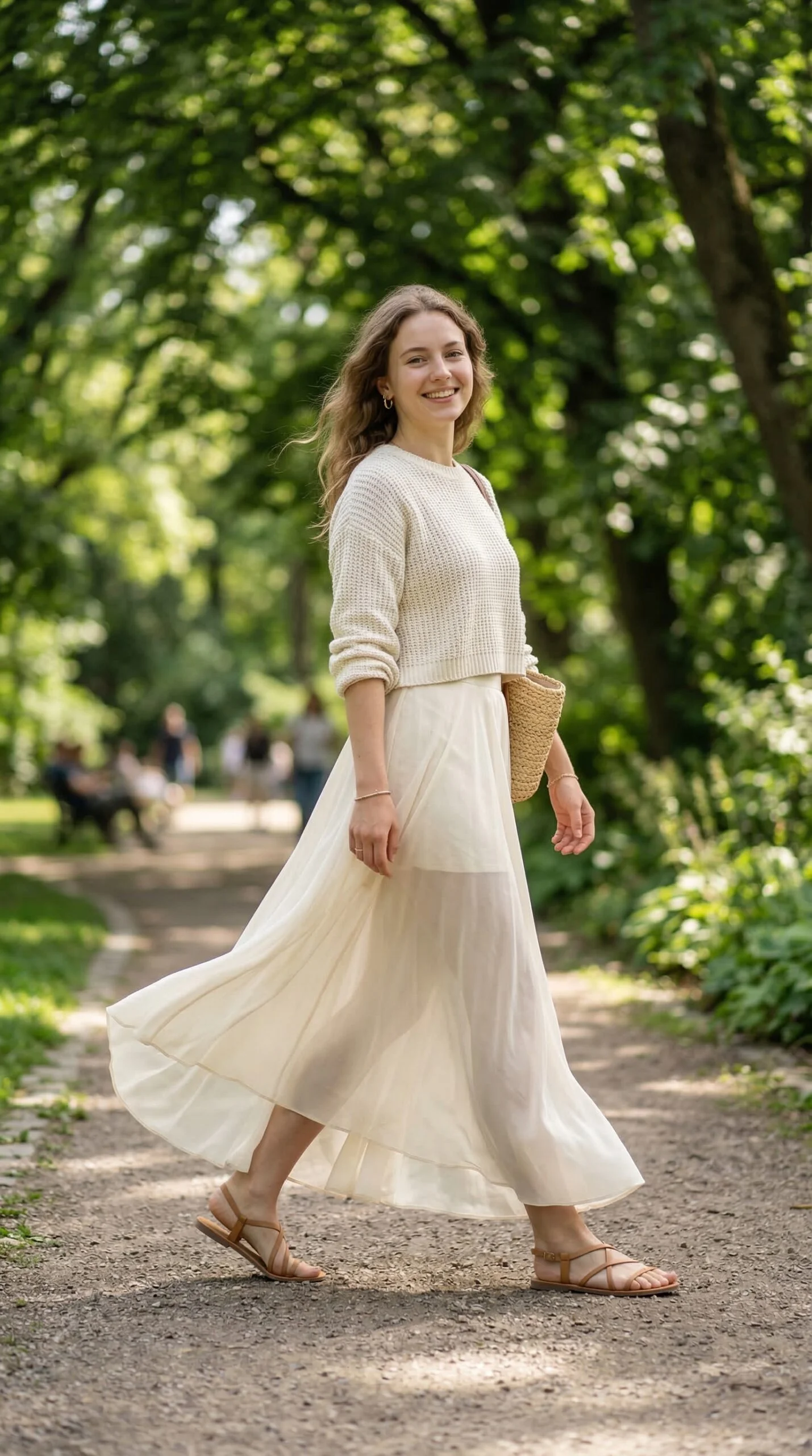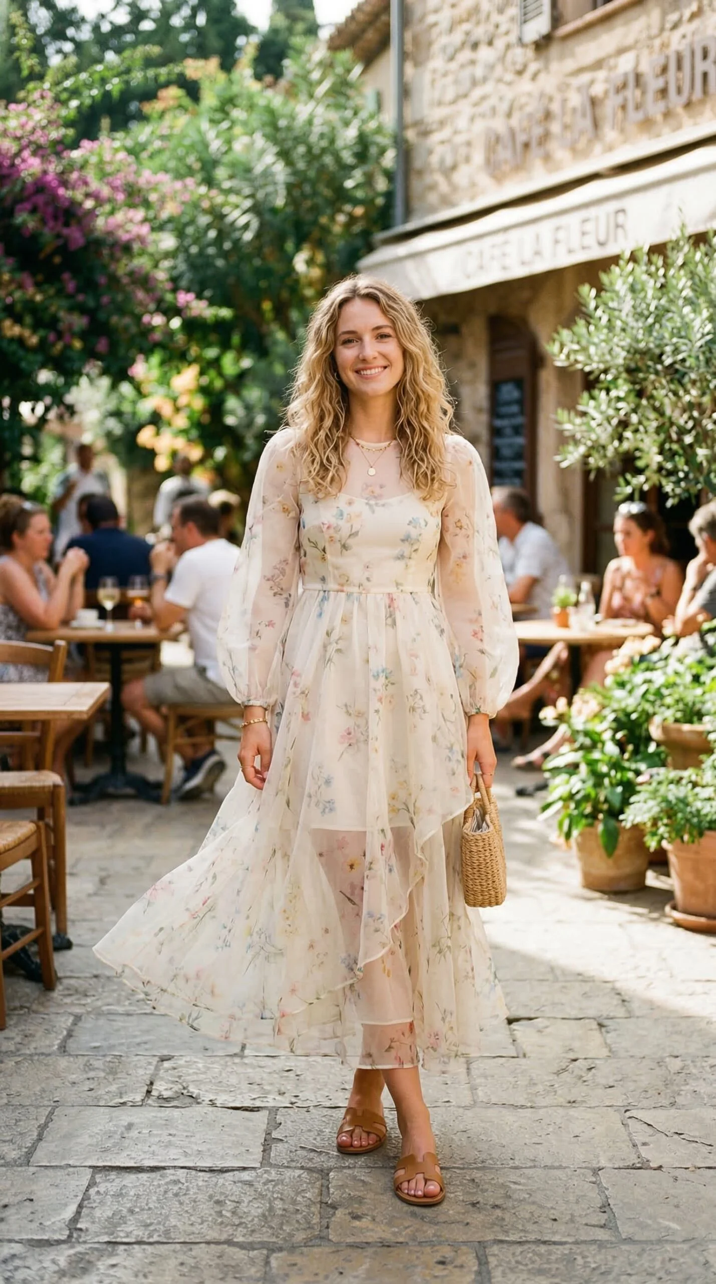 This look suits weddings, garden parties, and special occasions. The airy layers flatter graceful movement.