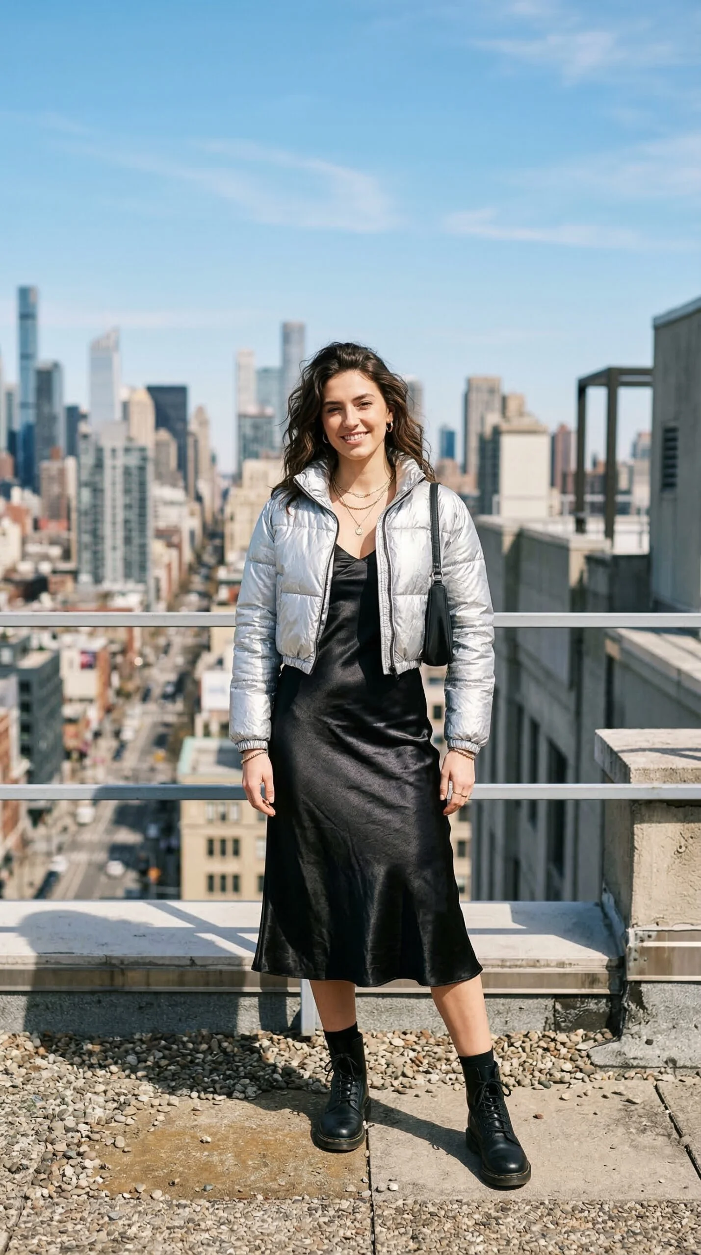 This look suits nightlife and fashion-forward events. The reflective surface adds drama.