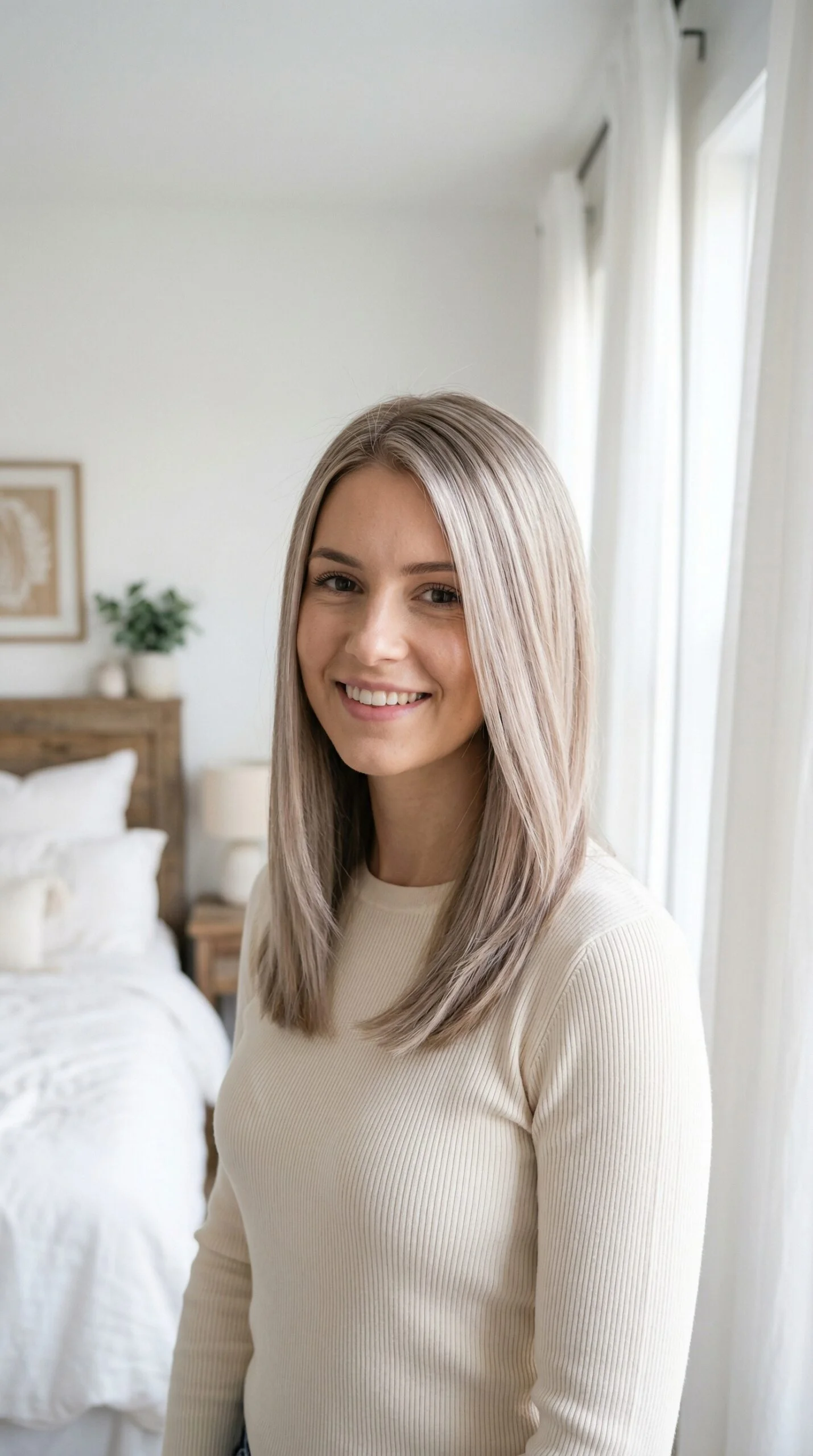 This shade suits cool skin tones and sleek styles. Perfect for those wanting subtle brightness.