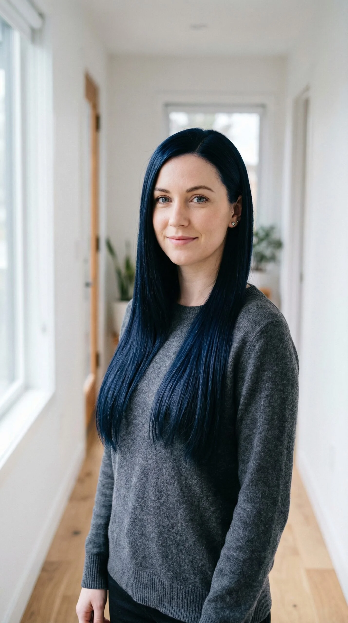 Near-black hair reveals hidden blue tones under light. The finish feels dramatic yet incredibly sleek.
