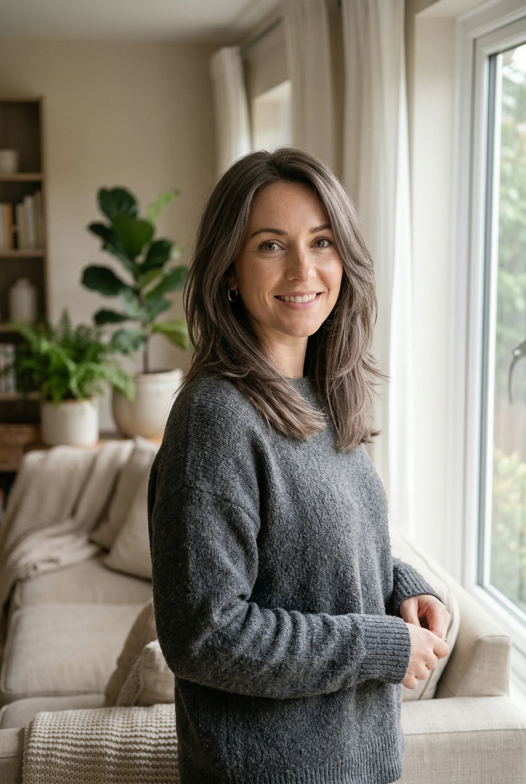 Cool beige undertones soften classic brunette shades. The result feels airy and refined.